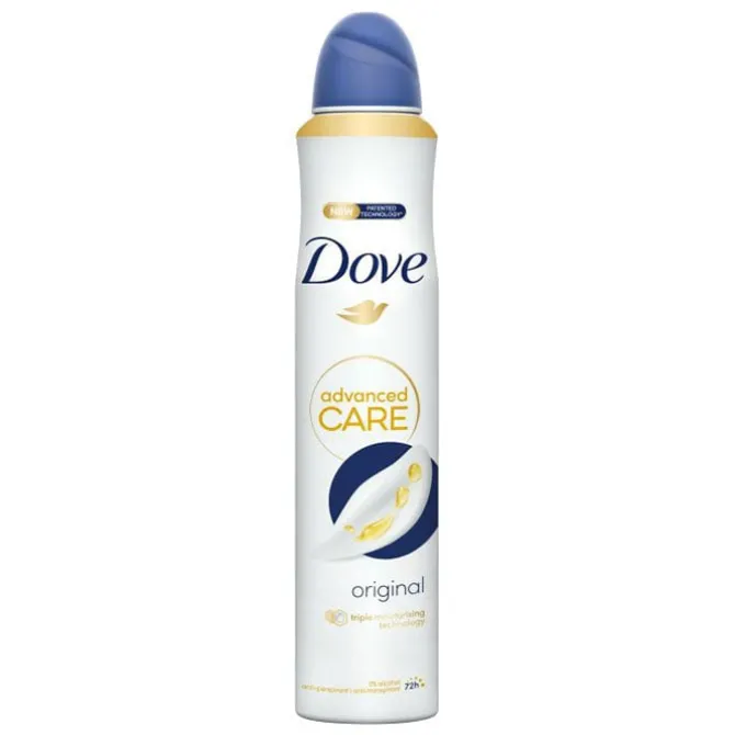 Advanced Care Original Desodorante Spray de Dove es un desodorante hidratante y antitranspirante que protege hasta 72 horas.