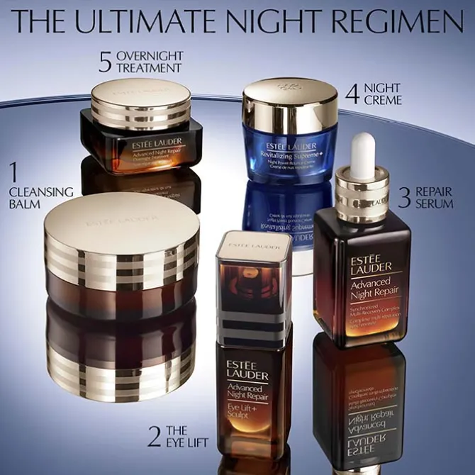 La fórmula avanzada de Estée Lauder Advanced Night Repair Eye Lift + Sculpt contiene Hexapéptido-8, un péptido que ayuda a reafirmar, elevar y restaurar la piel. Una red de polímeros 2HA Volume Filler y AH para amortiguar el movimiento de las líneas estáticas y dinámicas, y Tripéptido-32 para optimizar el proceso natural de reparación nocturna de la piel.