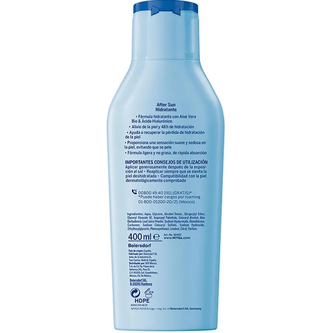 After Sun Loción Hidratante de Nivea Sun es una loción que calma e hidrata la piel favoreciendo su regeneración.