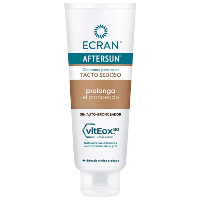 Aftersun Gel-Crema Prolongador del Broceado de Ecran es un gel crema post- solar que repara la piel y prolonga el bronceado.