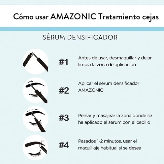 Para comenzar a utilizar Amazonic Sérum Cejas de Nuggela & Sulé, desmaquilla y limpia la zona y aplica el sérum. Peina y masajea con la ayuda del cepillo y espera de 1 a 2 minutos para aplicar el maquillaje si se desea.