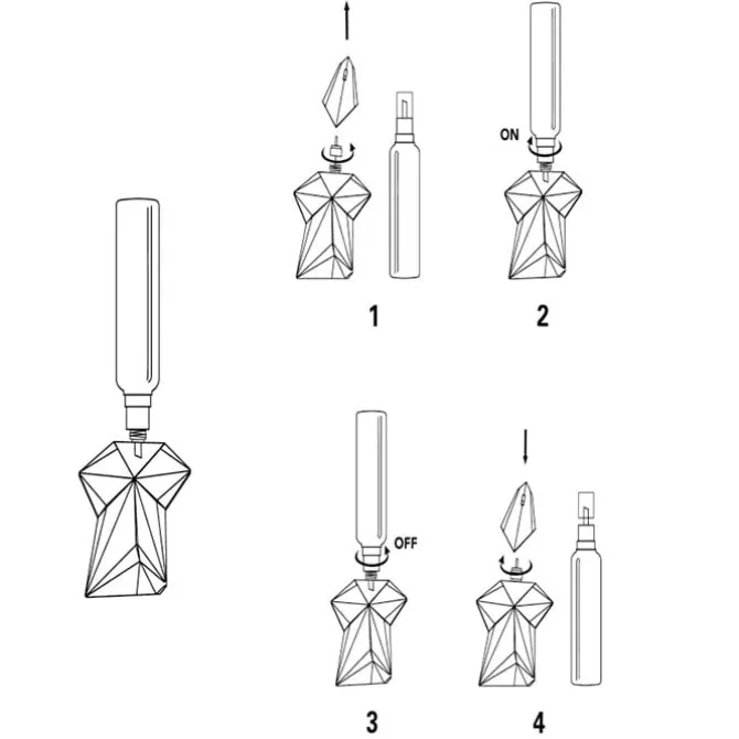 - Una vez rellenado, desenrosca del frasco de recarga y enrosca de nuevo el frasco de la fragancia.