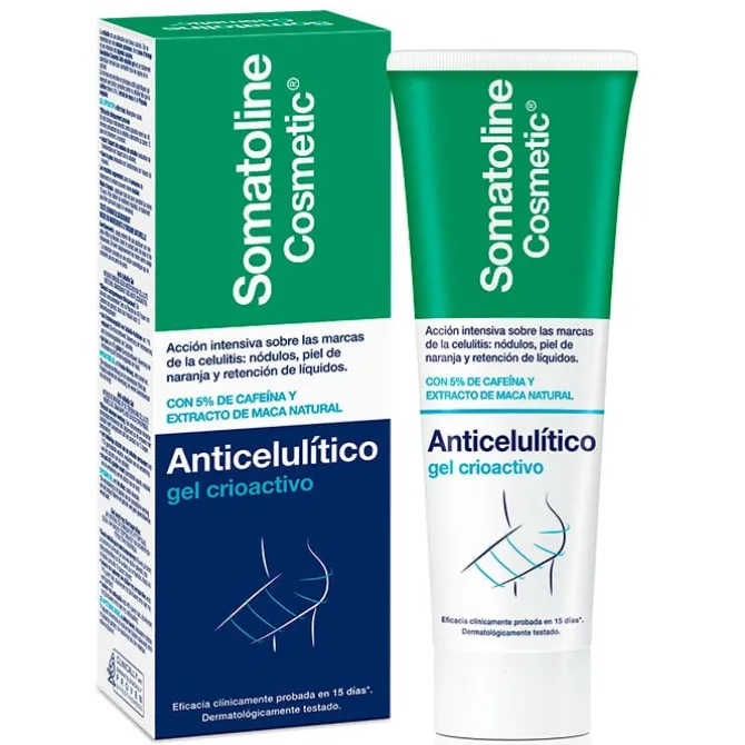 Con Somatoline Anticeculítico se estimula el drenaje, se favorece la eliminación de los líquidos retenidos y se ejerce una acción reafirmante intensa mejorando su textura visiblemente. La piel se muestra uniforme y suave. De textura gel refrescante de rápida absorción. Recomendado para afinar y combatir todo tipo de piel con celulitis localizada. Al prolongar el tratamiento a lo largo de 4 semanas, se potencian intensamente los resultados. Con el uso habitual de Somatoline Anticelulítico Gel Crioactivo la piel recupera su flexibilidad, luce más lisa, firme y sedosa.