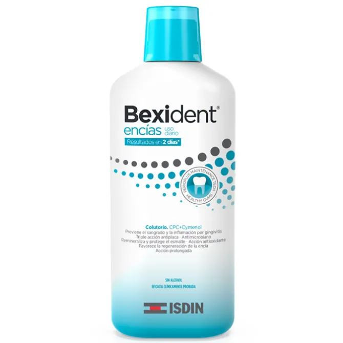 Isdin Bexident Encías Uso Diario Colutorio Colutorio es perfecto para aliviar y favorecer la regeneración de las encías evitando su sangrado. Las encías se calman y refuerzan, los dientes lucen saludables y brillantes.