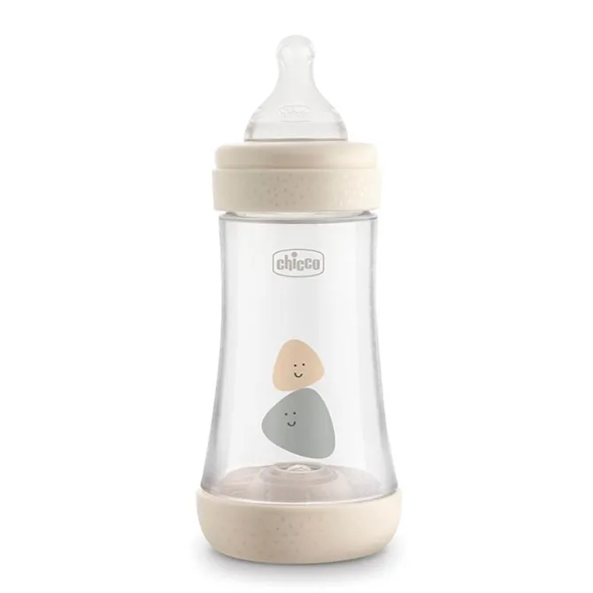 Biberón Perfect 5 Beige 2 Meses+ de Chicco es un biberón con tetilla de silicona extra suave, anticólico y bio funcional.