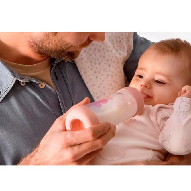 Este biberón se adapta al ritmo biológico del bebé variando la intensidad de succión en cada toma, gracias a la membrana equilibrium que contiene en la base del biberón. Su tetina de silicona extra suave con acabado soft sense simula el pecho materno y produce una agradable sensación durante la toma. De flujo lento, se reduce el efecto cólico. 0% BPA. Con el uso de Chicco Biberón Perfect 5 Rosa 0 Meses+ se evitan interrupciones y ahogos. Se favorece la tranquilidad y correcta ingestión, alcanzando su máximo bienestar.