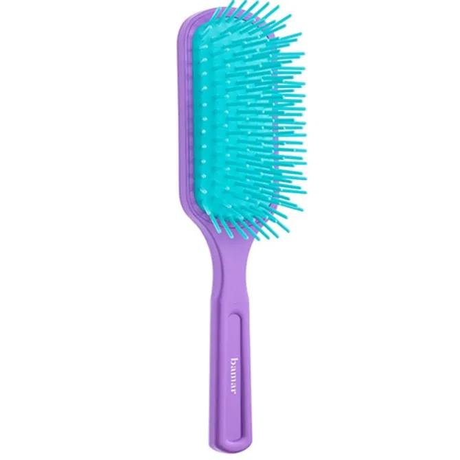 Su diseño ergonómico se adapta a la forma y tamaño de la mano de forma cómoda y natural. Incluye un mango flexible de goma que se adapta a la presión en el momento del cepillado. Bamar Cepillo Neumático Paleta Púa Gruesa Color es perfecto para reforzar el cabello y facilitar el desenredado, el peinado luce más suelto, sedoso y voluminoso.
