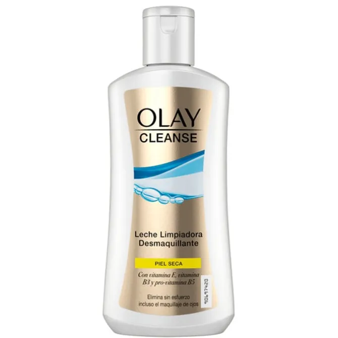 Cleanse Leche limpiadora Desmaquillante de Olay es una leche limpiadora que elimina el maquillaje con vitamina B3, vitamina E y pro-vitamina B5.