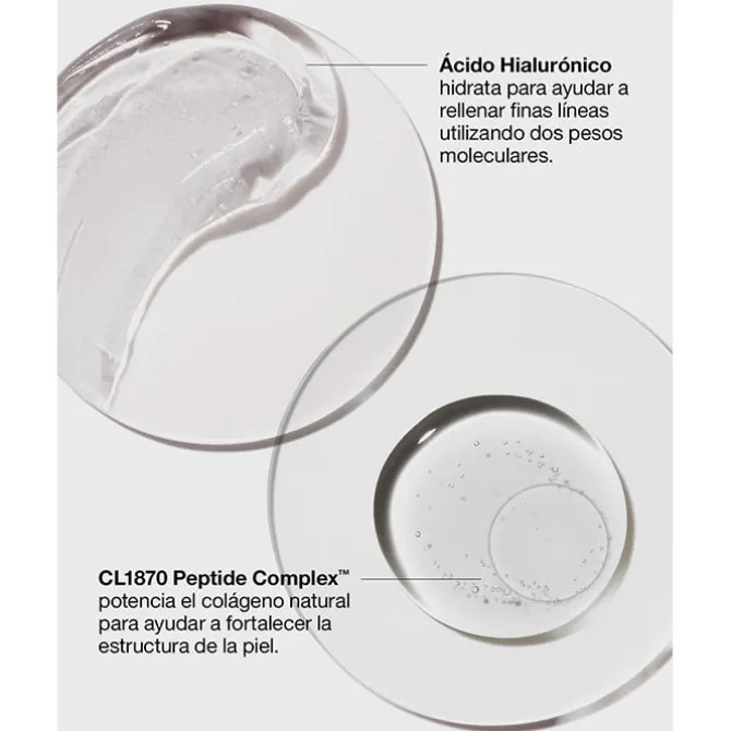 Esta hidratante de textura rica ultranutritiva de Clinique está formulada para corregir visiblemente las líneas y arrugas y así conseguir una piel más elástica y visiblemente rejuvenecida.Su innovadora fórmula con CL1870 Peptide Complex™ que combina péptidos para ayudar a potenciar el colágeno natural de la piel y así ayudar a reforzar la estructura dérmica, consiguiendo una piel más fuerte y lisa. El ácido hialurónico de dos pesos moleculares ayuda a inundar y sellar la piel con hidratación, recuperar la elasticidad de la piel y suavizar visiblemente las finas líneas de sequedad. El extracto de semilla de soja es rico en ácido lisofosfatídico (LPA), que nutre para ayudar a fortalecer la piel. La manteca de karité contiene lípidos que forman la barrera de la piel y es fundamental para mantener hidratada la piel más seca.