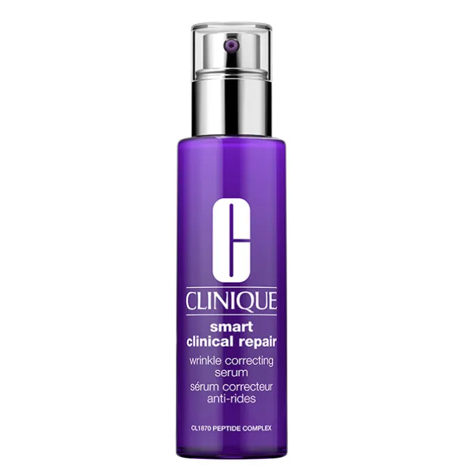 Además la formulación de Clinique Smart Clinical Repair Wrinkle Correcting Serum contiene Tripéptido-1 de palmitoilo, Acetil hexapéptido-8, Palmitoil tetrapéptido-7 y una combinación óptima de cafeína y extracto de algas para ayudar a minimizar la irritación. Libre de aceite, alcohol desnaturalizado, SLS, SLES y sulfatos. No contiene parabenos, ftalatos ni fragancia. Indicado para todo tipo de pieles.