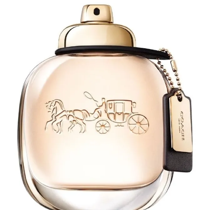 El frasco es un verdadero homenaje, en el podemos ver muchas referencias a la marca Coach. Coach es la casa de diseño de maravillosos accesorios de lujo en la que se combinan pieles con otros materiales, estableciendo así pequeñas obras de arte no al alcance de cualquiera. Un frasco icónico, ovalado y muy femenino. Su tapón dorado imita los cierres de candado que podemos ver en los bolsos de esta firma. Además de ello una etiqueta de cuero cuelga del frasco, haciendo referencia al material representativo del que hacen uso en sus artículos, sin duda un broche fantástico y único con el que no hay duda de que se trata de un perfume de la marca Coach.