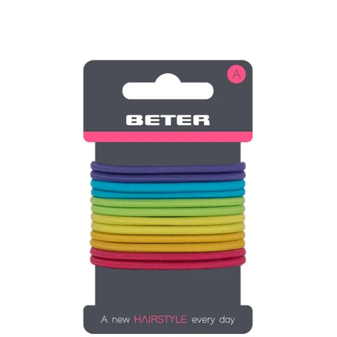 Estos 12 coleteros, en 6 tonos muy vivos, pueden utilizarse solos o combinarse entre ellos para crear diferentes peinados con varias coletas, trenzas… Su flexibilidad permite una gran sujeción y evita que se deslice el cabello. Con Beter Coleteros Finos Multicolores Trendy Classics obtenemos peinados divertidos y vistosos.