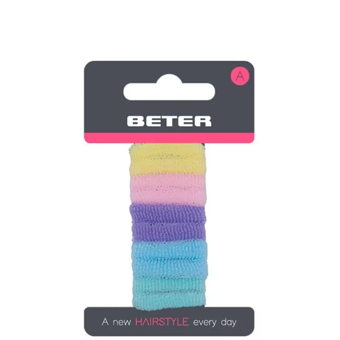 Estos 10 coleteros mini de tacto suave en tono pastel variados de la colección Born from the Stars, sujetan con firmeza y son muy delicados con el cabello. Pueden utilizarse solos o combinarse entre ellos para crear recogidos, coletas, trenzas… Su diseño evita marcas en el cabello. Con Beter Coleteros Mini Born From The Stars obtenemos protegemos el cabello y obtenemos peinados originales y únicos.