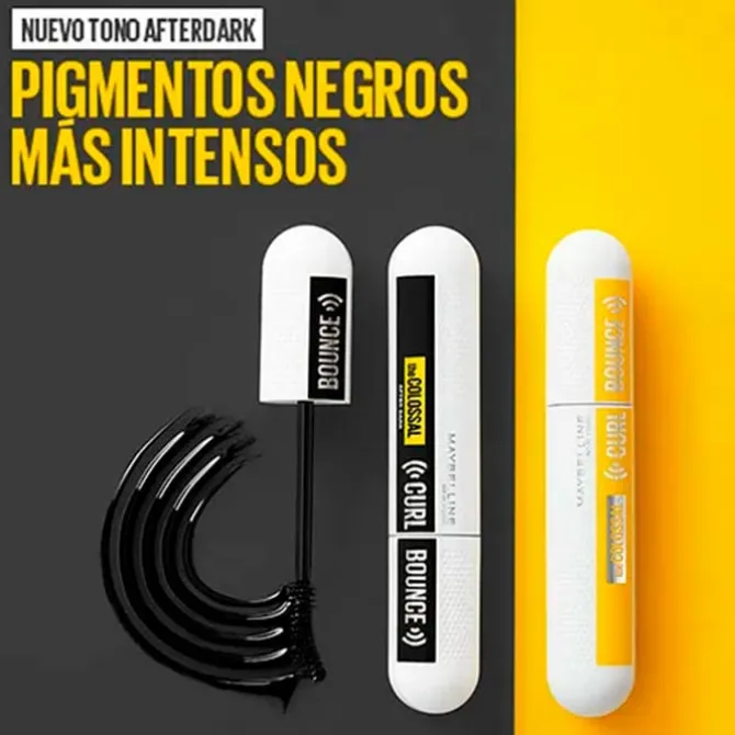 De textura suave fácil de aplicar y desmaquillar, evita los grumos y se distribuye uniformemente desde la raíz hasta las puntas. Maybelline Colossal Curl Bounce Afterdark está indicada para realzar la curvatura a todo volumen y conseguir una mirada de impacto.