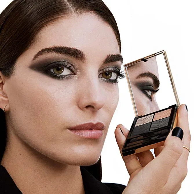 Se recomienda aplicar el color más claro de Couture Mini Clutch de Yves Saint Laurent como base en todo el párpado. A continuación, destacar con un tono más oscuro creando profundidad. Por último, iluminar la mirada aplicando un color centelleante en el párpado con el dedo o con un pincel. Es aconsejable completar con Crushliner Waterproof y la máscara de pestañas favorita de YSL para conseguir un acabado «prêt-à-porter».