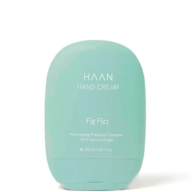 Crema de Manos Haan Fig Fizz de Beter es una crema de manos hidratante con complejo prebiótico y aroma de higo verde, pimiento y habas de tonka.