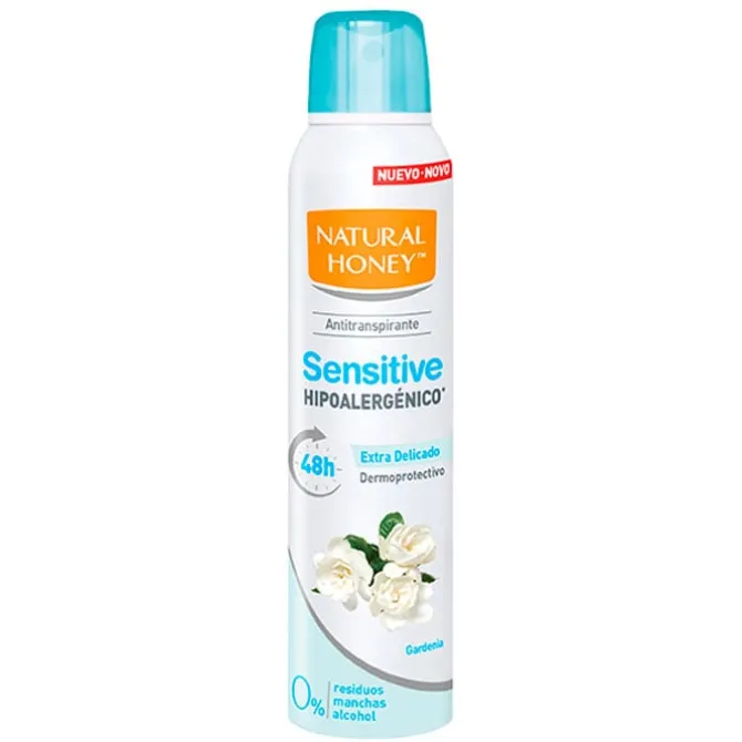 Desodorante Sensitive de Natural Honey es un desodorante en spray hipoalergénico que protege durante 48 horas.