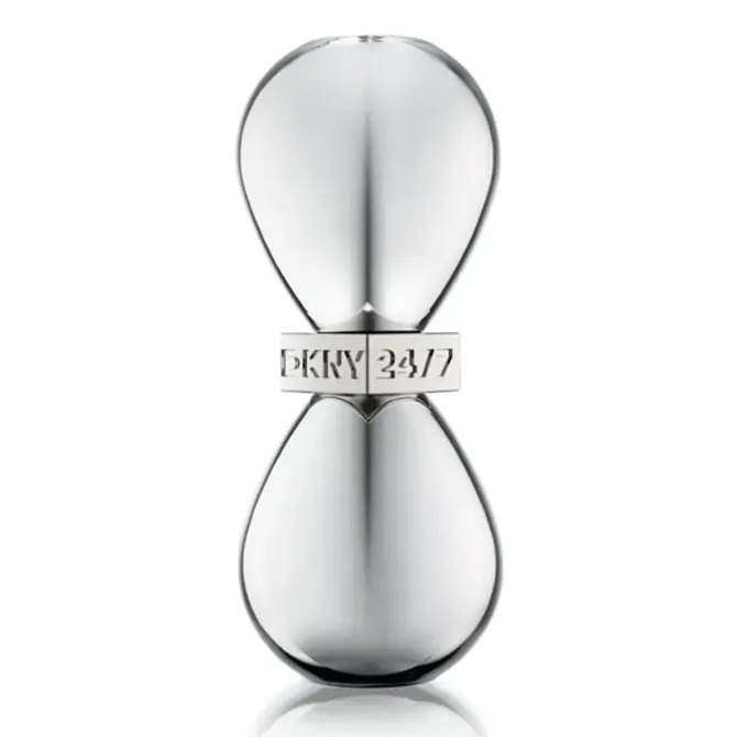 El frasco De Donna Karan DKNY 24/7 EDP reinterpreta un reloj de arena plateado sublime cuyo tiempo se detiene eternamente en la mítica ciudad de Nueva York. En el centro se destaca la firma expresando todo su potencial.