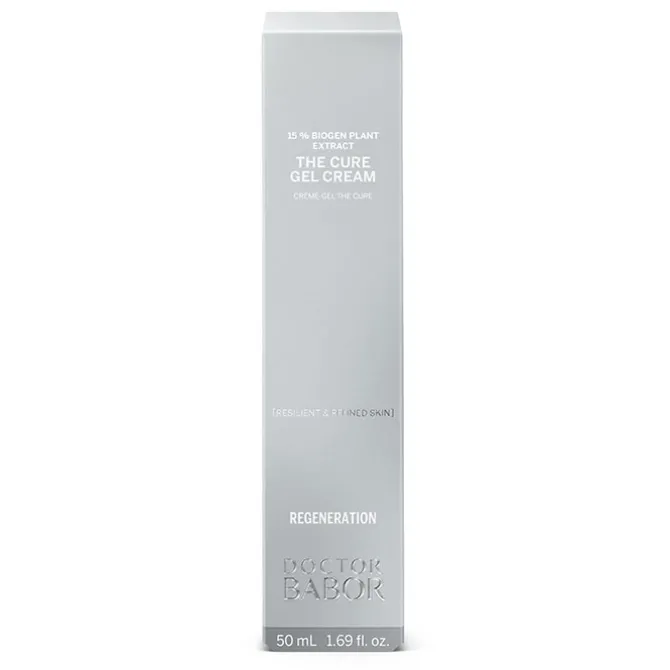 The Cure Cream Gel, una obra maestra de la experiencia científica de Babor, con el extracto de planta de biogen en una concentración del 15 % junto con sustancias vegetales hiperfermentadas compuestas por mirto y lentisco, que aumentan las defensas antioxidantes de la piel, regulan el microbioma de la piel, promueve la humedad de la piel y mejora la película hidrolipídica y pantenol al 4,5% que fortalece su resistencia y garantiza una hidratación intensiva de la piel desde el interior. Reduce eficazmente el picor y la irritación de la piel provocados por influencias externas.