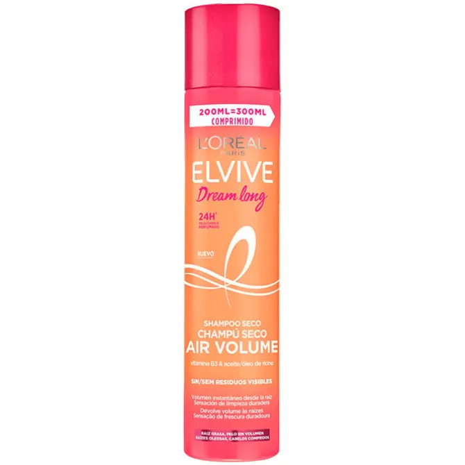 DREAM LONG Champú Seco Air Volume champú de ELVIVE en seco que aporta volumen desde la raíz y refresca para una sensación de limpieza.