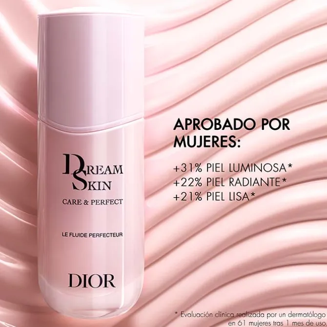 Dior Dreamskin Care & Perfect Le Fluide Perfecteur es un fluido hidratante sin color. Su fórmula enriquecida con extractos de longoza y opilia, aporta un acabado luminoso. incluso al natural, la piel luce visiblemente más bella.