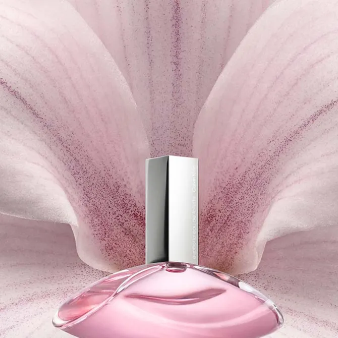El frasco de Calvin Klein Euphoria Eau de Toilette se presenta en una versión actualizada diseñado para revelar el delicado y espléndido perfume, de tono rosa inspirado en el rocío. Elaborada con ingredientes naturales, entre ellos la esencia de rosa, un extracto de comercio justo certificado y de origen responsable.