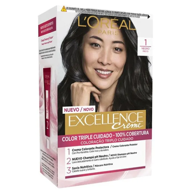Excellence de L’Oréal es una nueva gama de tratamientos triple-protección con 3 ingredientes activos para el cuidado: colágeno, ceramida y pro-keratina. Éste tinte ayuda a mantener tu cabello un 85% más resistente, ayudando a proteger las zonas frágiles del cabello, particularmente las puntas.