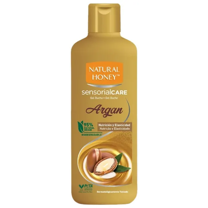 Este gel de ducha contiene en su formulación aceite de argán con un 95% de activos de origen natural que protegen, nutren y aromatizan la piel intensamente, dermatológicamente testado. Esta indicado para aportar elasticidad y confort en todo tipo de piel y proporcionar bienestar con su agradable fragancia. Con Natural Honey Gel Argán Adicction la piel se repara, luce flexible, sedosa y confortable.