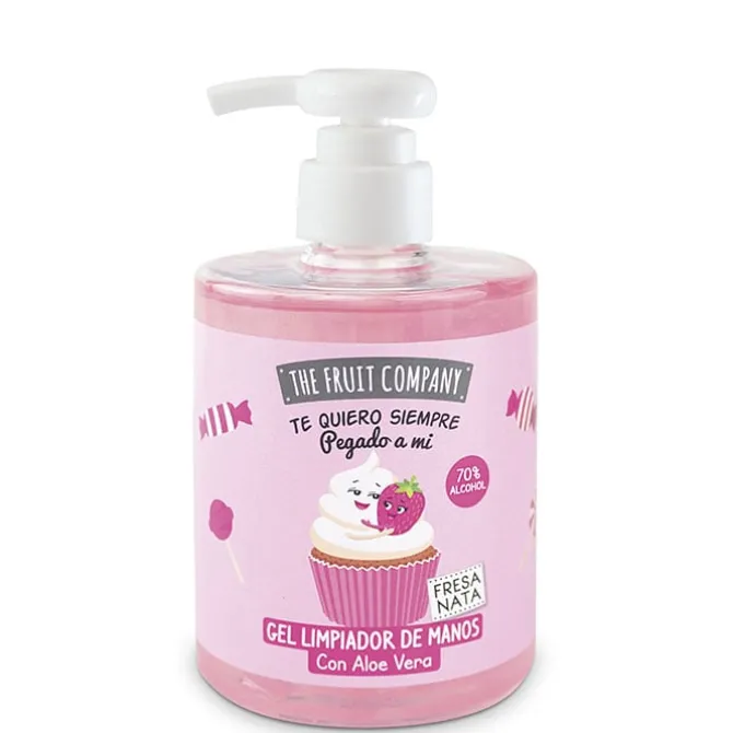 Gel Limpiador de Manos Dosificador Fresa Nata de Fruit Company es un gel limpiador de manos con alcohol de aroma fresa y nata.