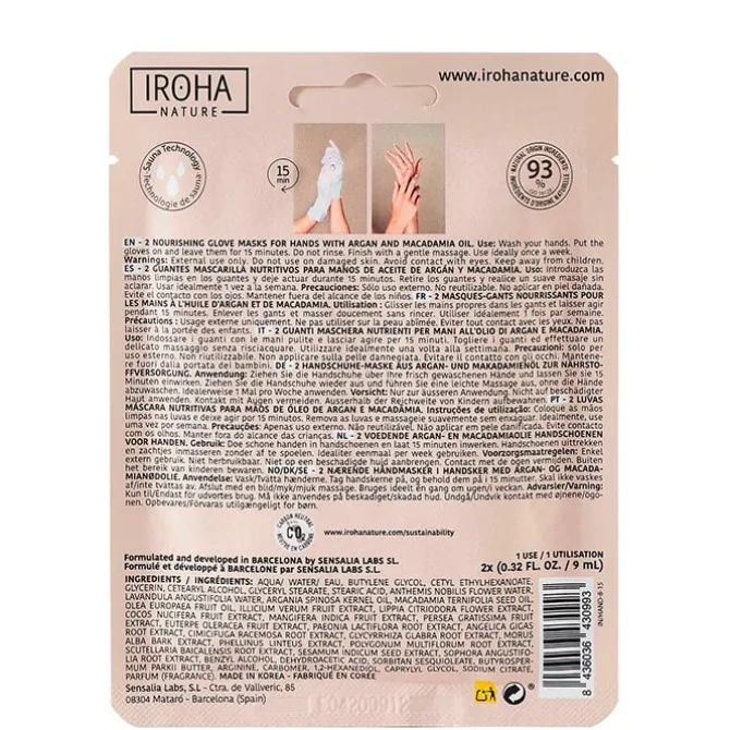 Guantes Mascarilla Nutritivos de IrohaNature es una mascarilla para manos que repara, nutre y regenera la piel de las manos.