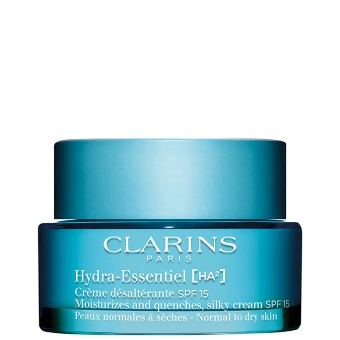 Su textura fresca y sedosa se funde al instante. Clarins Hydra-Essentiel [HA²] Crema de Día SPF15 está indicada para pieles secas a normales y proporciona una la piel rellena, flexible, luminosa y confortable.