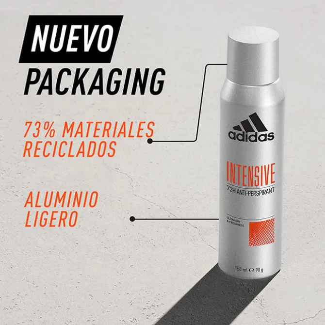 Intensive Desodorante Spray de Adidas es un desodorante anti-transpirante y sin alcohol que protege durante 72 horas.