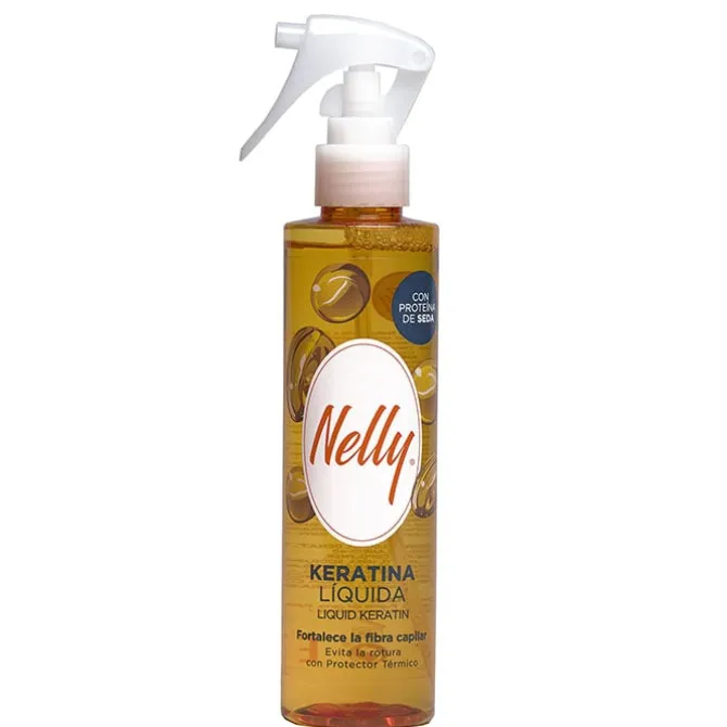 Este tratamiento capilar formulado con keratina líquida y proteína de seda que suavizan y fortalecen la fibra capilar. Su protección térmica evitala rotura gracias frente a plancha y secador, que actúa desde la raíz hasta las puntas. Incluye un vaporizador que distribuye uniformemente el producto por todo el cabello y facilita su aplicación. Con Nelly Keratina Líquida el cabello se refuerza, luce más saludable, brillante y elástico.