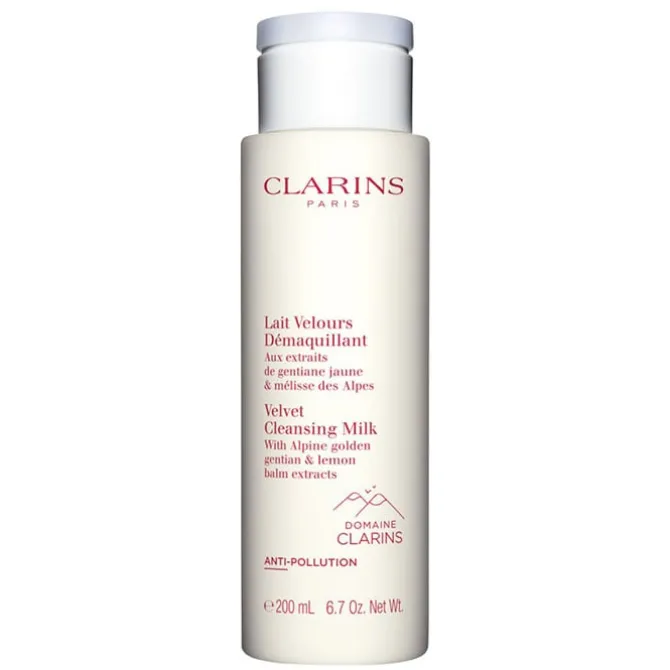 De textura leche finay untuosa Clarins Lait Velours Démaquillant es perfecta para limpiar suavemente la piel normal y seca con suavidad y confort, luce elástica, sedosa y calmada.