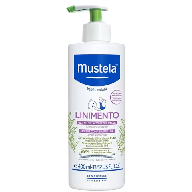 Linimento Zona Pañal de Mustela es un limpiador suave para la higiene de la zona del pañal del bebé.