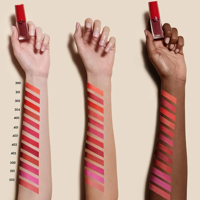 Este labial de Armani Beauty tiene una textura líquida extremadamente fina que aporta una sensación de ingravidez con un color intenso de acabado mate. Tiene una larga duración de hasta 8 horas gracias a sus micropigmentos, no es graso ni pegajoso.