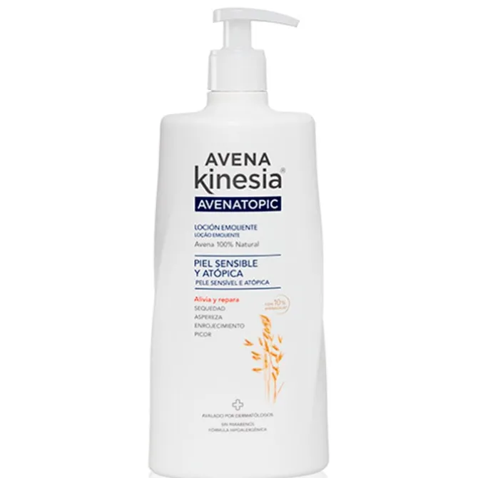 Loción Emoliente Avena de Avena Kinesia es una loción corporal con avena 100% natural que hidrata y repara la piel seca.