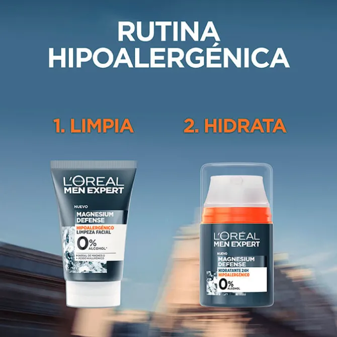 Magnesium Defense Limpieza Facial deL’Oréal Men Expert es un gel limpiador para el rostro de hombre con ácido hialurónico y mineral de magnesio que elimina impurezas e hidrata la piel.