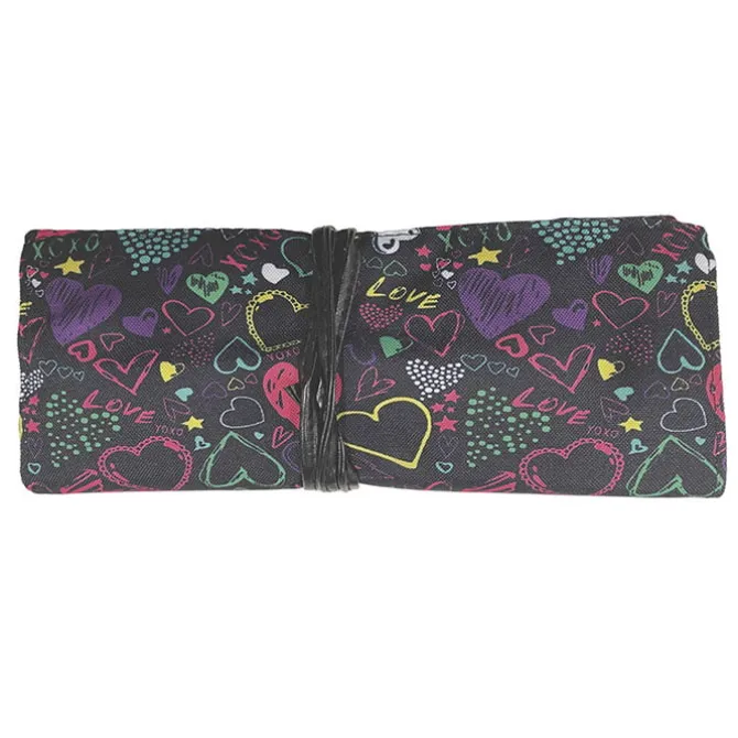 Manta de Maquillaje Corazones de Romeo & Julieta es una manta de 15 brochas y pinceles para maquillaje.