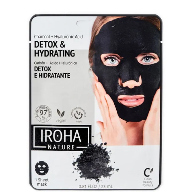 Mascarilla Detox Hidratante Carbón de Iroha Nature es una mascarilla detoxificante de tejido con carbón que purifica la piel del rostro al eliminar eficazmente las impurezas, mejorando visiblemente la elasticidad, textura y luminosidad de la piel.