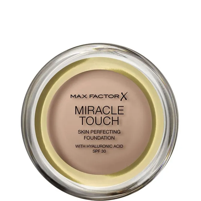 Miracle Touch Foundation de Max Factor, es una base de maquillaje cremosa sólida que se transforma en líquida al contacto con la piel. Aporta un acabado uniforme y natural y no requiere aplicar un corrector o polvos para perfeccionar el maquillaje. Indicado para todo tipo de pieles, incluso sensibles.