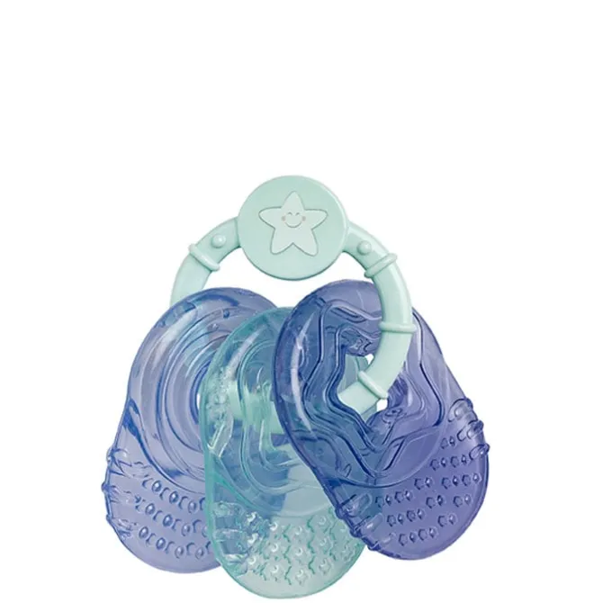 Este mordedor de agua contiene tres mordedores en uno, que pueden separarse de la anilla central e introducirse en la nevera para ayudar a reducir la hinchazón y su sensibilidad. De tamaño pequeño y fácil agarre para el tamaño de sus manitas incluyen diferentes texturas que generan un suave masaje en las encías para calmarlas.