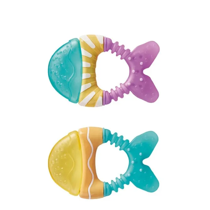 Este mordedor de agua contiene 2 pececitos de diferentes colores que pueden introducirse en la nevera para ayudar a reducir la hinchazón de las encías y su sensibilidad. De tamaño pequeño y fácil agarre para el tamaño de sus manitas incluyen diferentes texturas que generan un suave masaje en las encías para calmarlas.