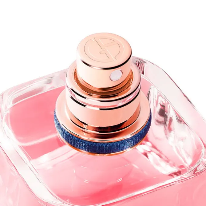 El frasco de My Way EDP de Giorgio Armani es un precioso talismán que acompaña en cualquier momento y captura los recuerdos inolvidables. Una botella de cristal robusto transparente que deja ver a la perfección su rosado jugo. Su tapón en piedra azulada es una metáfora del mundo que nos une a todos y se encuentra abrazada por un anillo dorado, símbolo del camino que cada mujer decide tomar en su vida. Su frasco es recargable, invita a vivir de manera más sostenible para reducir su impacto en el medio ambiente.