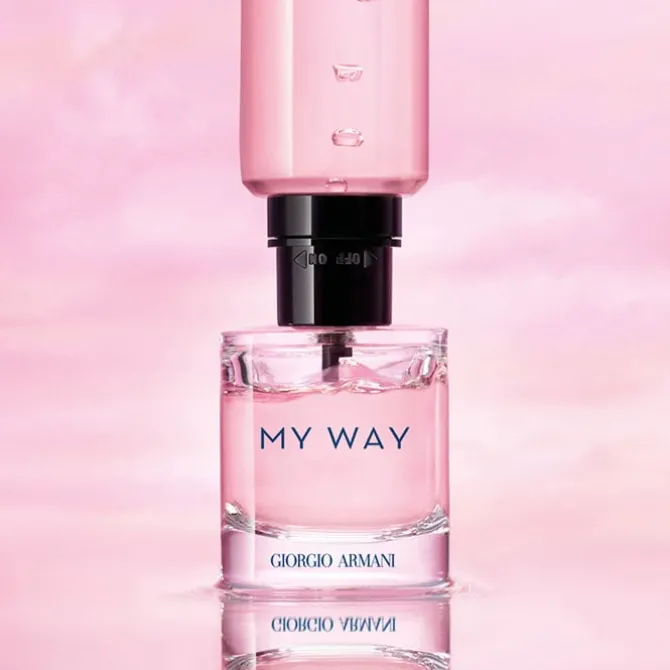 El frasco de Armani My Way Eau de Parfum se puede recargar en casa gracias a su frasco recargable. El recambio presenta un diseño innovador, que permite recargar el frasco vaporizador sin perder ni una sola gota de la fragancia.
