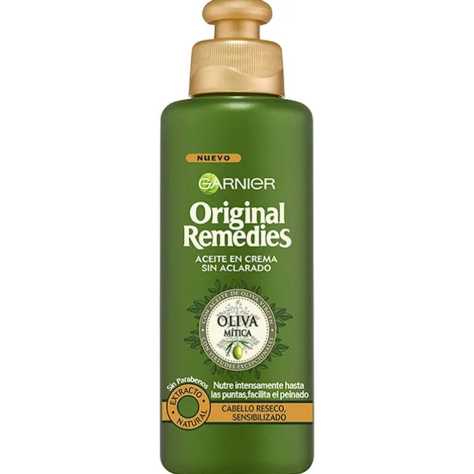 El aceite en crema Oliva Mítica de Original Remedies contiene aceite de oliva virgen que nutre el cabello reseco, sensibilizado hasta las puntas y facilita el peinado.