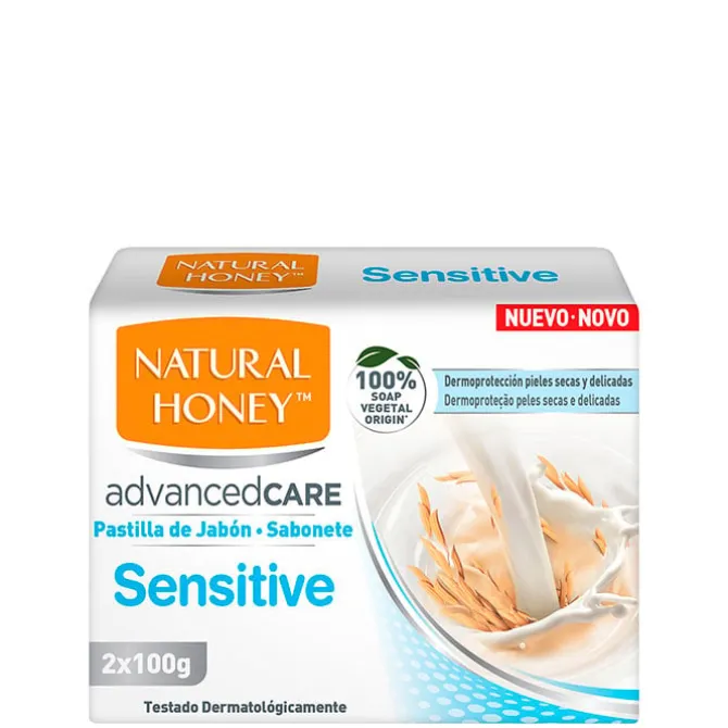 Pastilla de Jabón Sensitive de Natural Honey es una pastilla de jabón de manos que suaviza la piel seca y sensible.