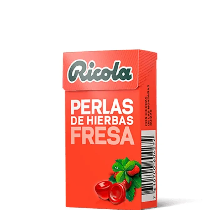 Perlas Fresa de Ricola son los pequeños caramelos blandos de diversas hierbas que alivian las molestias de la garganta.