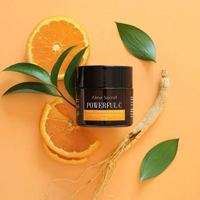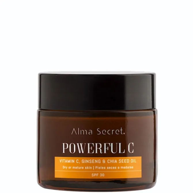 Powerful C Antiedad Ginseng & Chia de Alma Secret es una crema de día iluminadora anti edad con SPF30 para piel seca o madura.