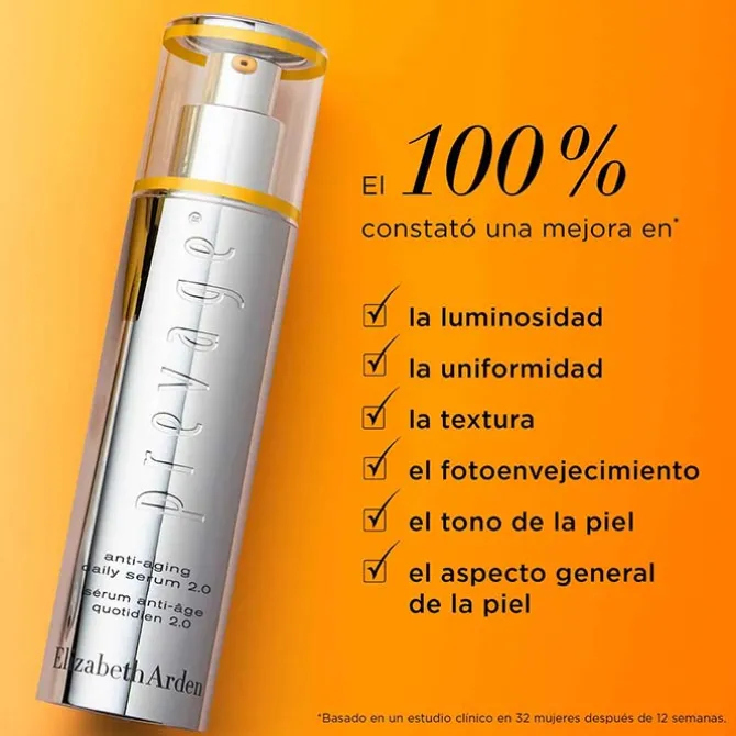 Este sérum de la línea Prevage de Elizabeth Arden ayuda a revertir visiblemente los signos de la edad, reafirma la piel, mejora la elasticidad, unifica el tono y la textura, mejora las manchas oscuras, ilumina, reduce las líneas de expresión y las arrugas, refina los poros y aclara la tez y protege frente a los agentes externos como la contaminación.